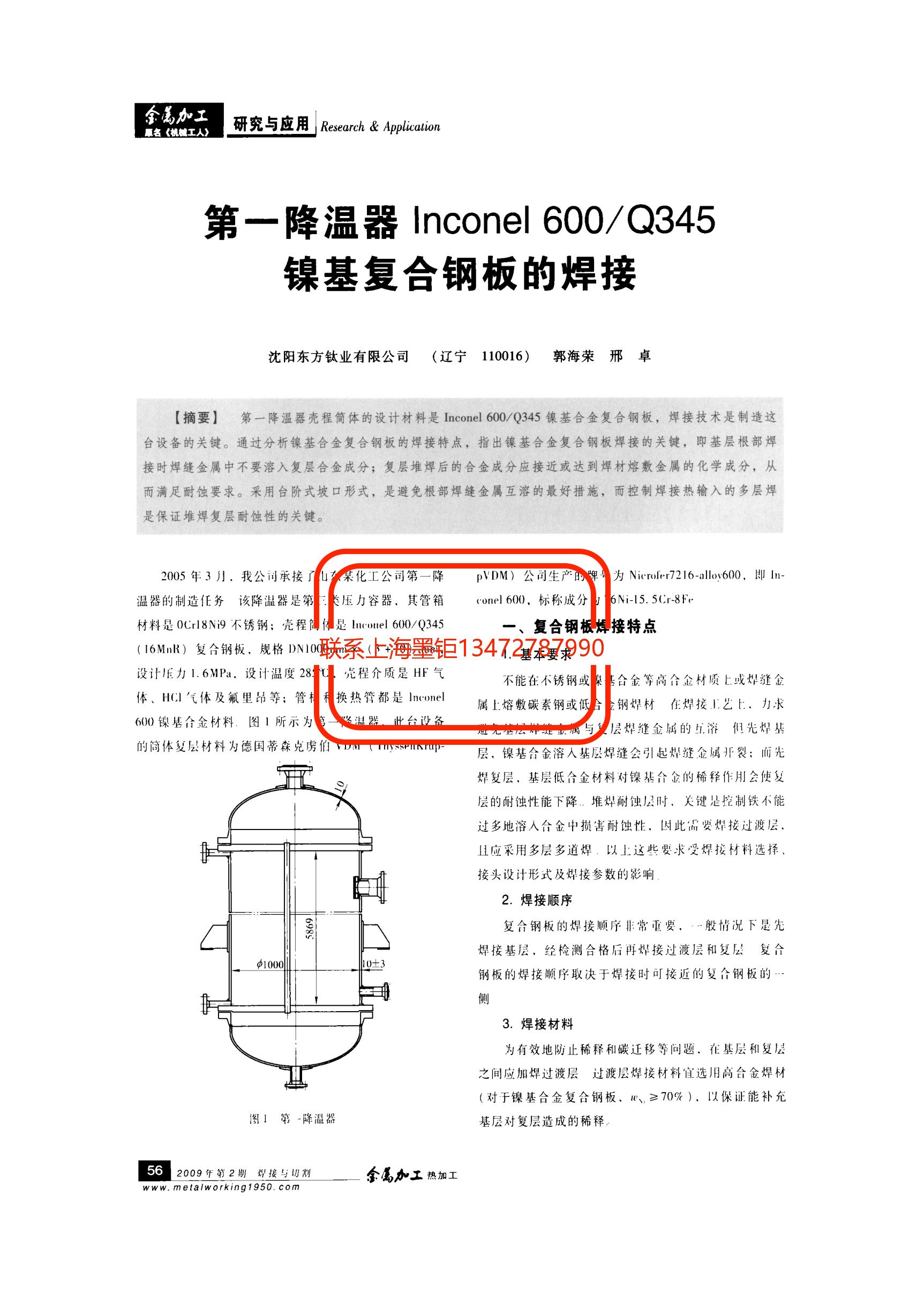 技術(shù)文章 第一降溫器Inconel600_Q345鎳基復(fù)合鋼板的焊接 更新時(shí)間 2021-07-12 10:28:31 閱讀 877 上一篇:高溫大氣和N_2中Inconel690_1Cr13不銹鋼的微動磨損特性 下一篇:INCOLOY825多波厚壁波紋管壓制過程