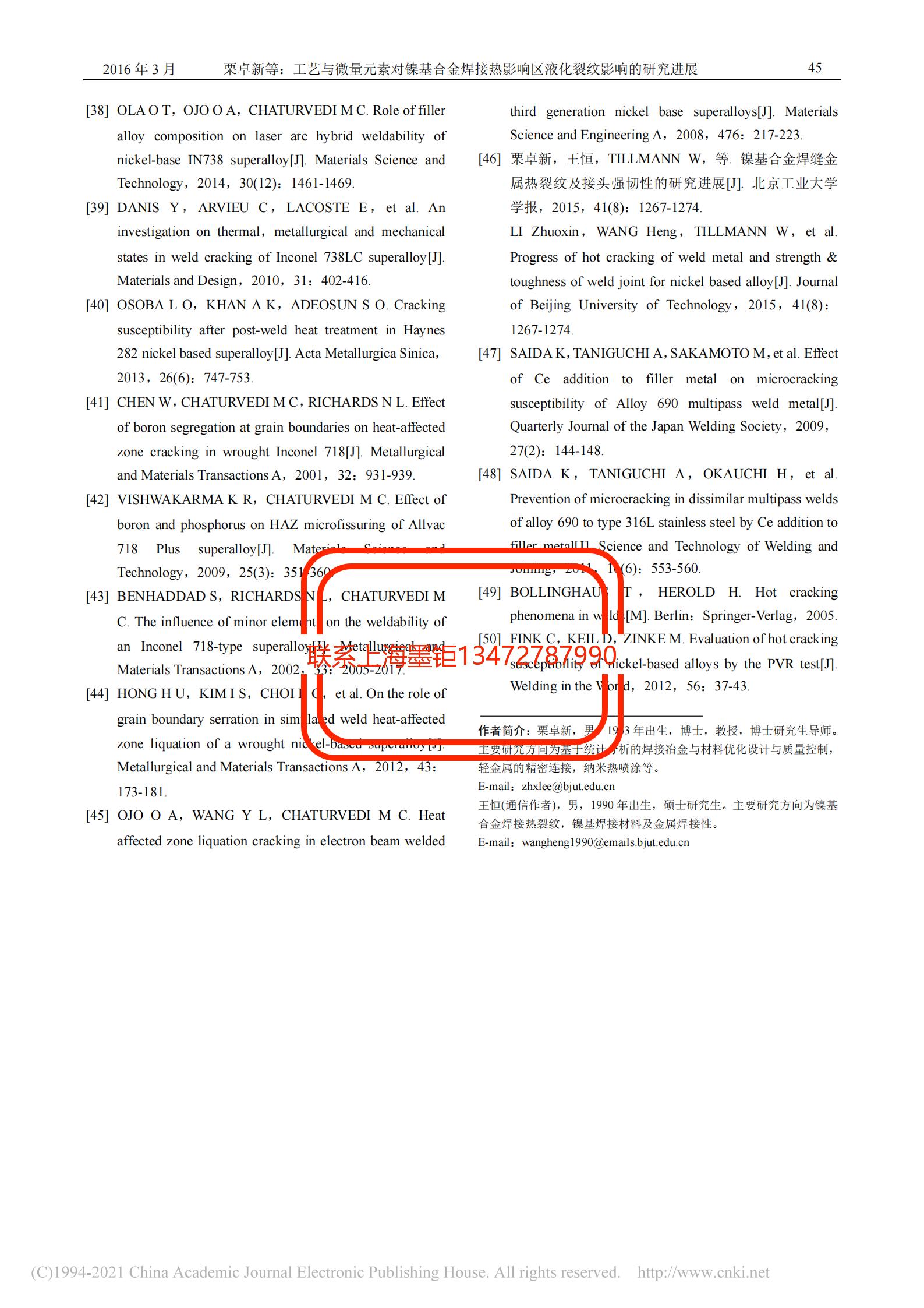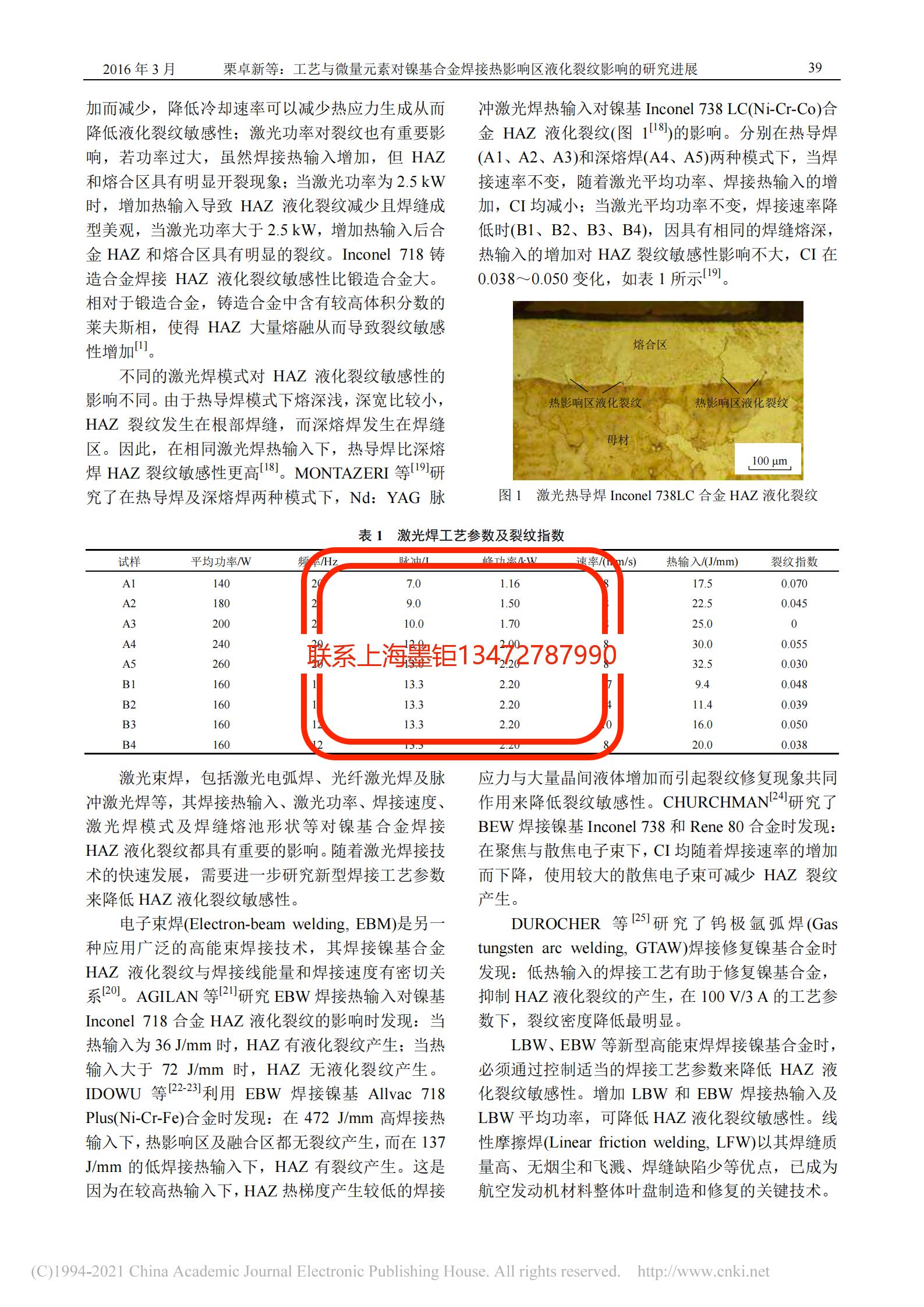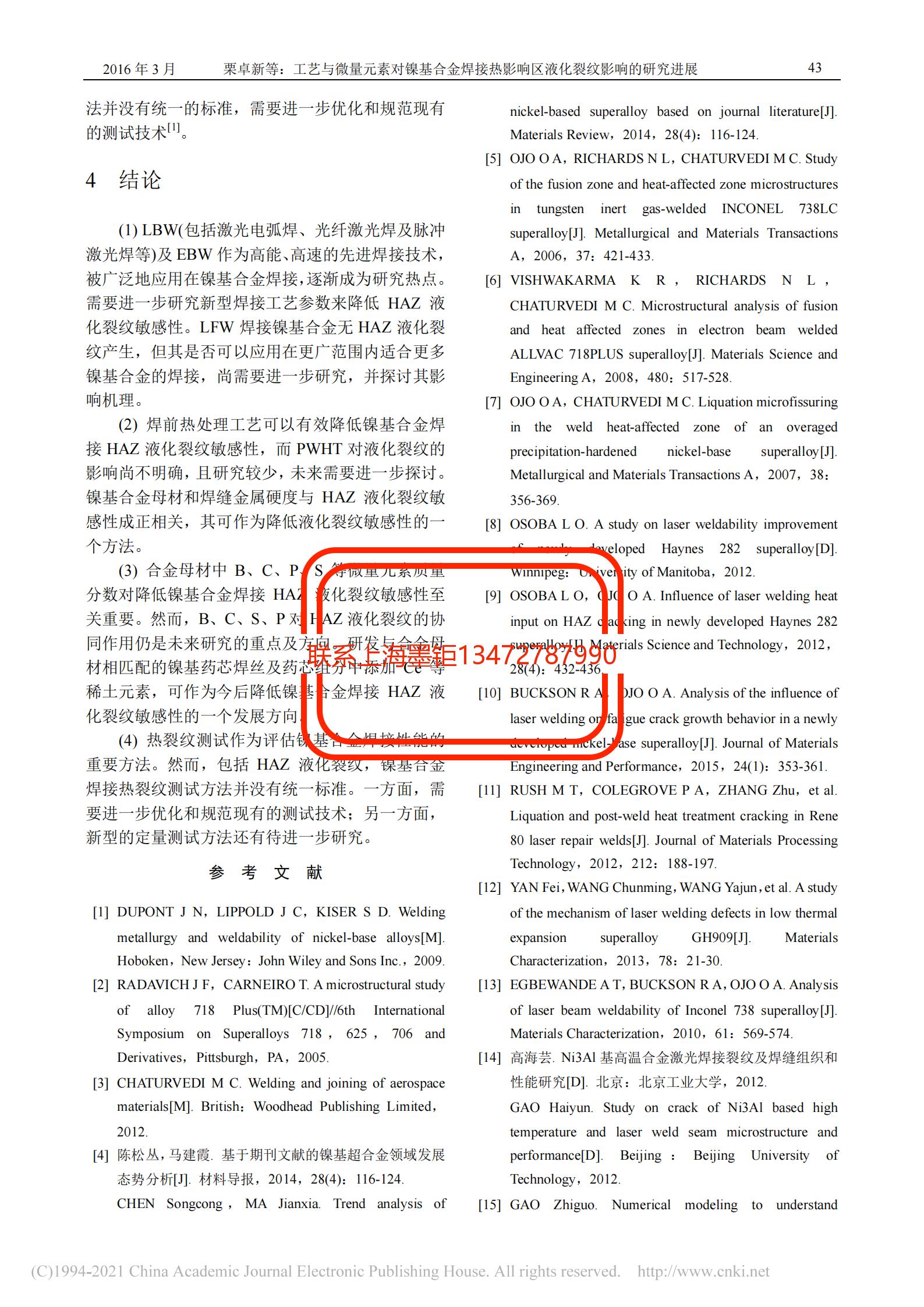 技術(shù)文章 工藝與微量元素對(duì)鎳基合金焊接熱影響區(qū)液化裂紋影響的研究進(jìn)展 更新時(shí)間 2021-07-20 02:14:54 閱讀 898 上一篇:鎳基合金740H的組織結(jié)構(gòu)與析出相分析 下一篇:Ti-6Al-4V和Monel K500合金在海水環(huán)境中與316不銹鋼對(duì)磨時(shí)的腐蝕磨損性能