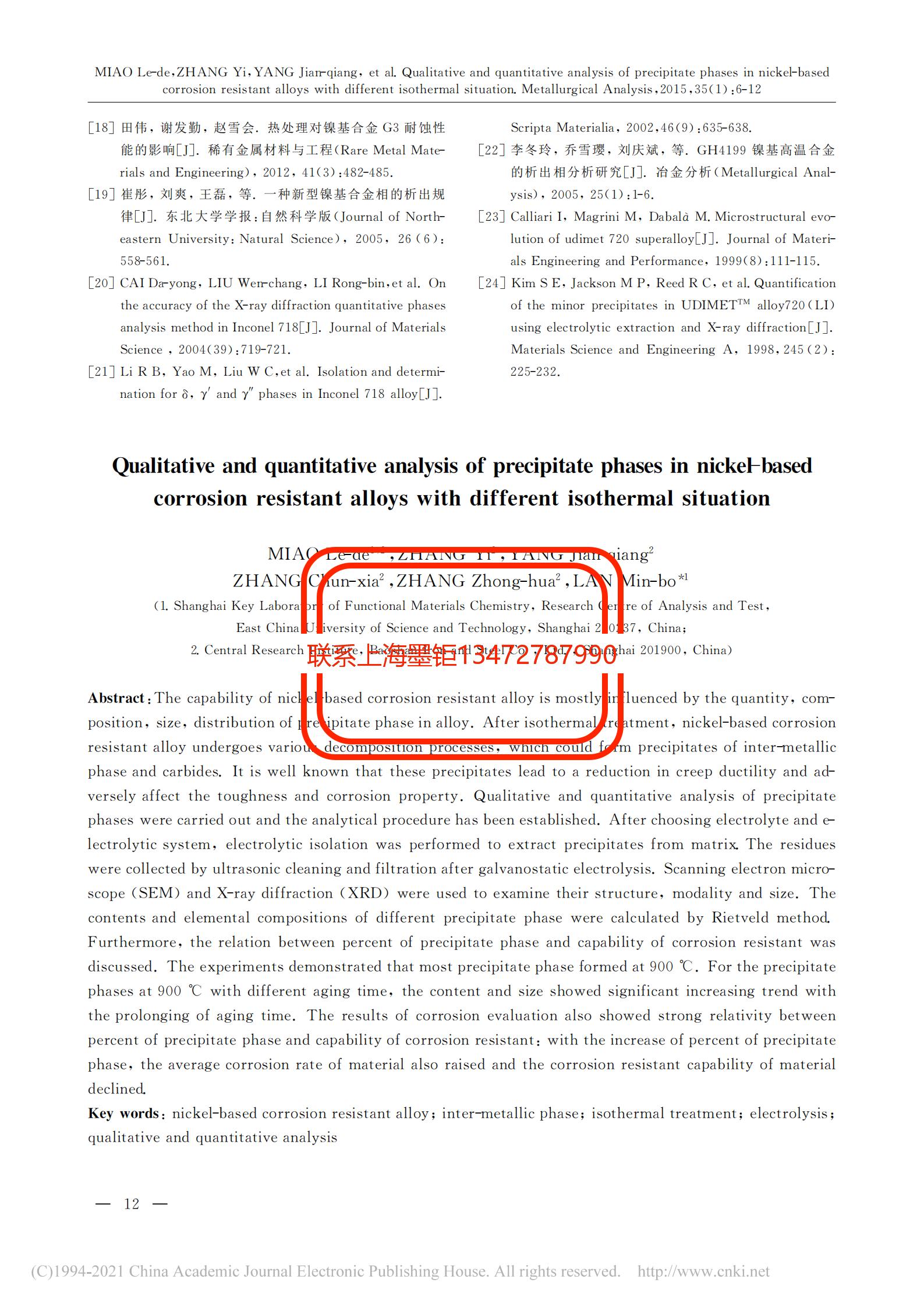 技術(shù)文章 不同熱處理狀態(tài)下鎳基耐蝕合金析出相的定性定量分析 更新時間 2021-08-10 02:54:28 閱讀 1428 上一篇:GH4199燃燒室高溫合金新選擇 下一篇:YB∕T 4852-2020 燒結(jié)杯試驗技術(shù)規(guī)范