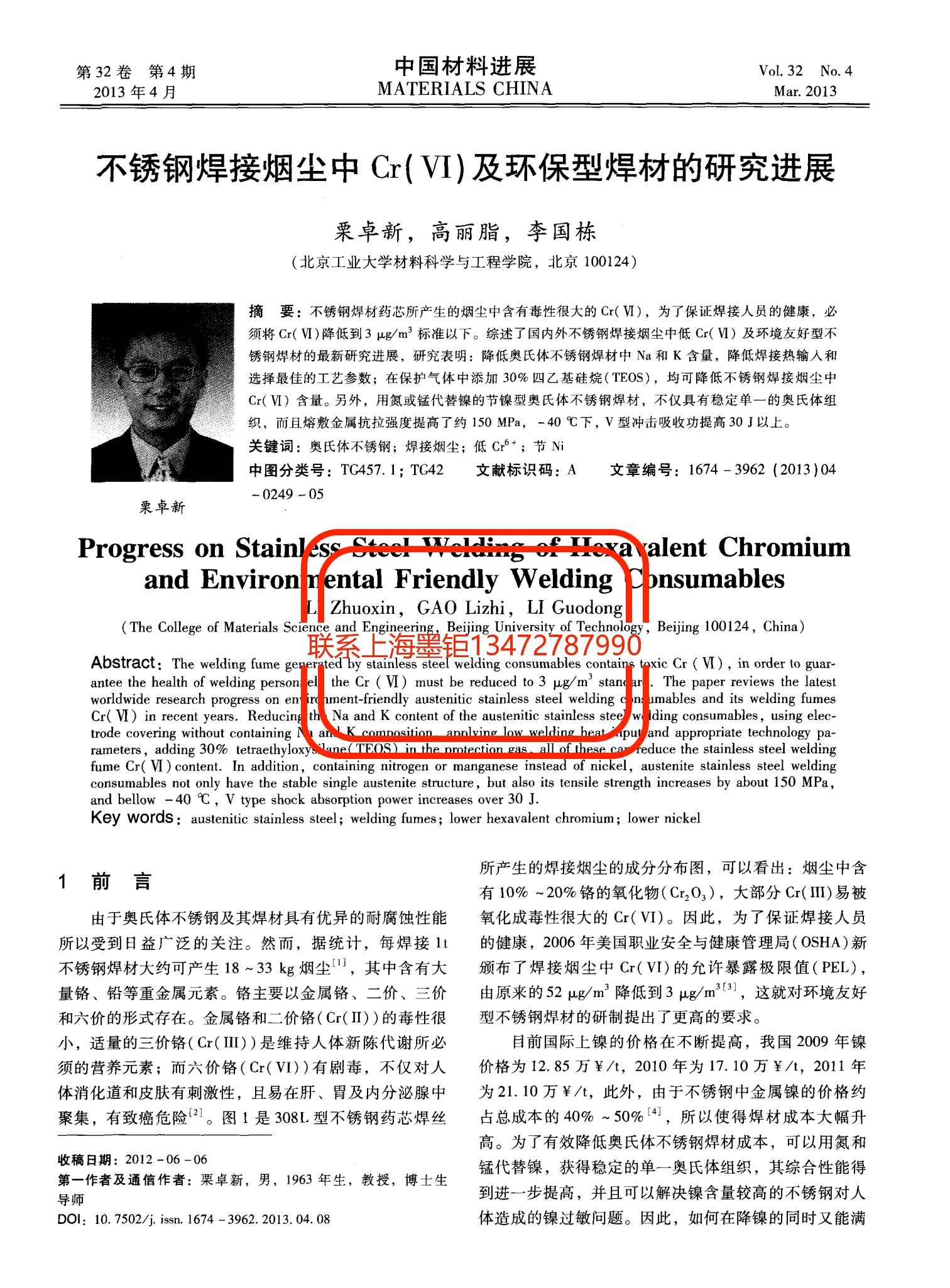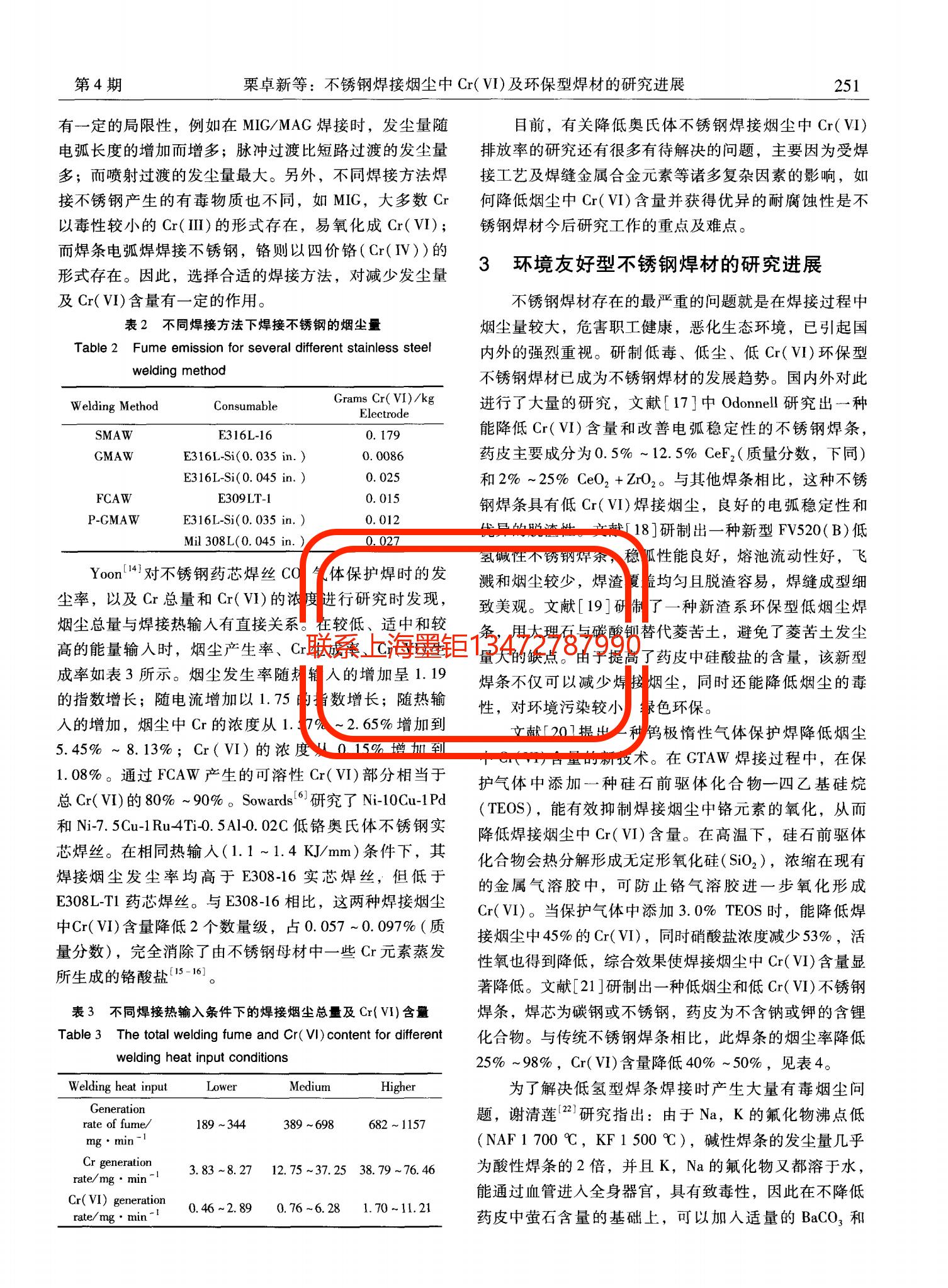 技術(shù)文章 不銹鋼焊接煙塵中Cr(VI)及環(huán)保型焊材的研究進展 更新時間 2021-08-12 03:24:17 閱讀 1966 上一篇:YB∕T 4852-2020 燒結(jié)杯試驗技術(shù)規(guī)范 下一篇:Haynes230合金超高溫氣冷堆中間換熱器的熱拉伸行為